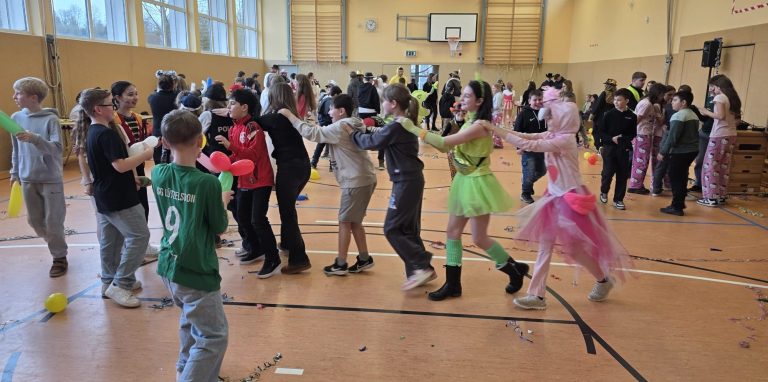Unsere SV organisierte für die 5. und 6. Klassen eine Fastnachtsfeier in der Turnhalle mit kleinen Spielen, Musik und Tanz.